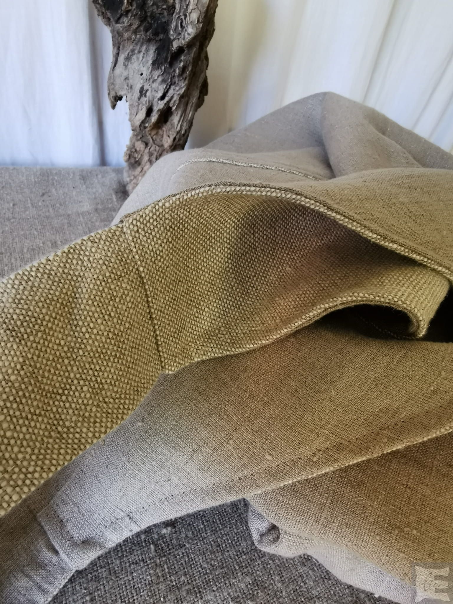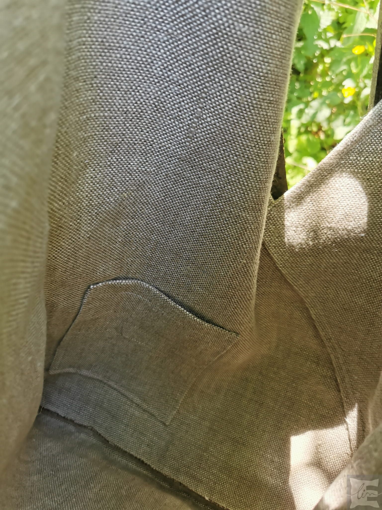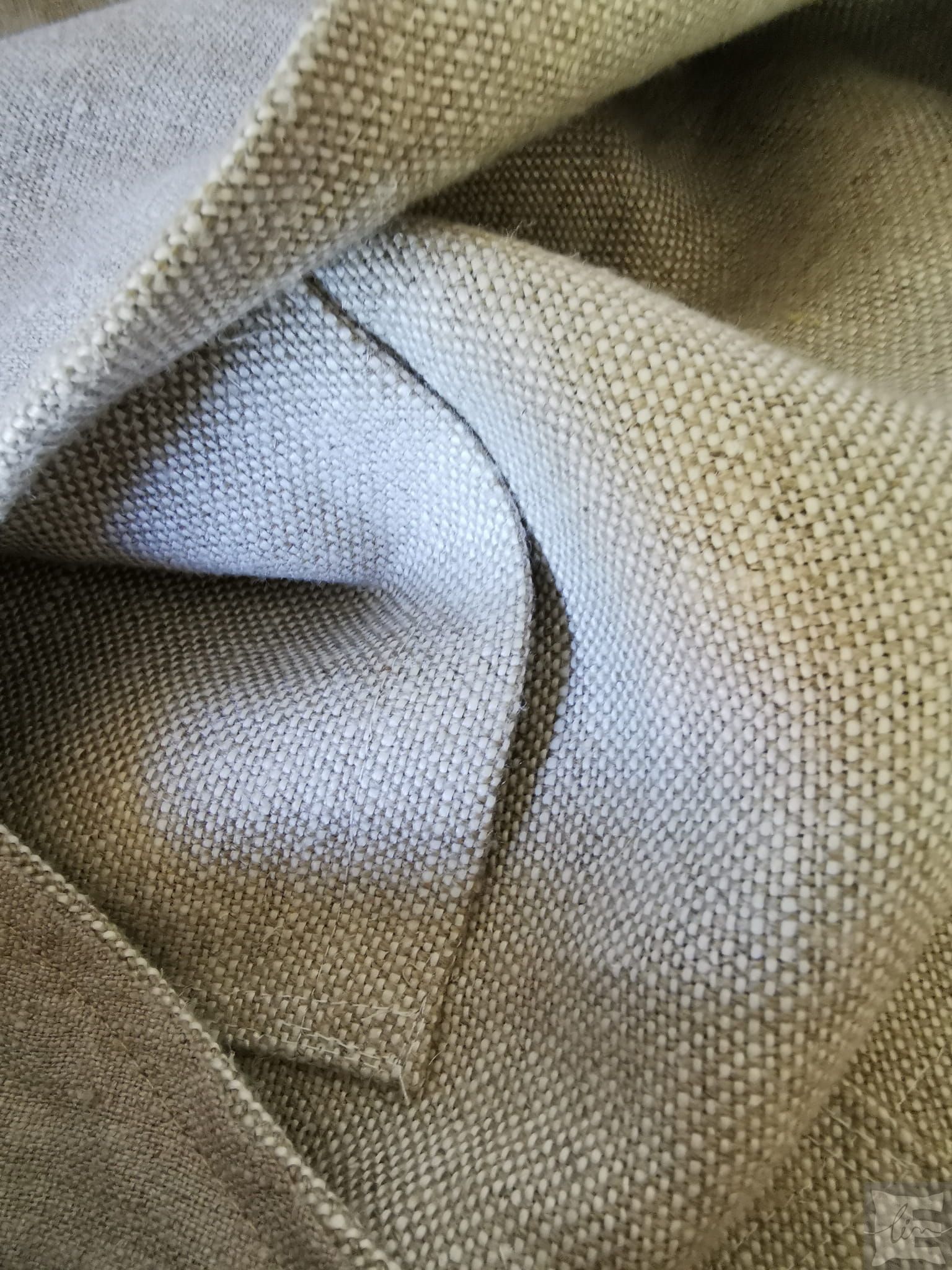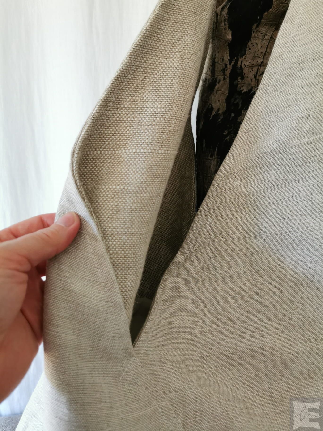 Uszyta jest z 100% zmiękczonego, grubego lnu. Wnętrze również jest wykończone zmiękczonym 100% lnem z kieszonką w środku.